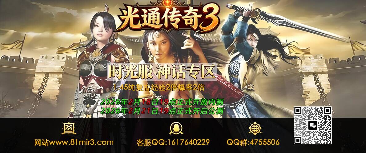 | 【老骨灰新区】起步快|爆率高 | 02月19日内测 02月19日开区 | 中国多线 | 传奇三1.45 |